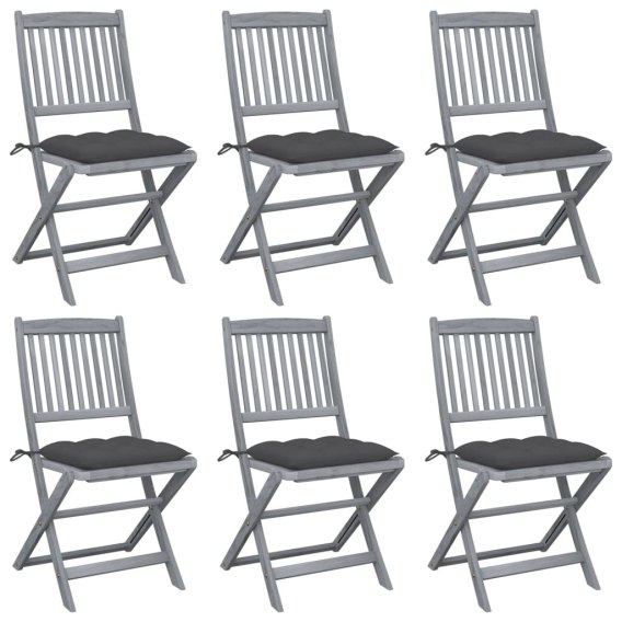 • VidaXL Składane krzesła ogrodowe, 6 szt., poduszki, drewno akacjowe