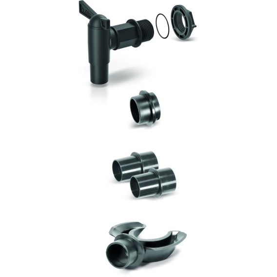 - Zestaw składa się z: zbieracz, reduktor łączący wąż z uszczelką, reduktor łączący wąż ze zbieraczem wody, uszczelka, kranik
