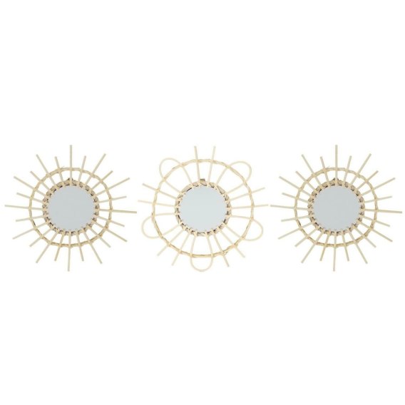 Zestaw trzech naturalnych luster rattanowych ożywi twoje wnętrze i doda mu letniej świeżości. Trzy różne lusterka o średnicy zwierciadła 10cm każde stworzą na ścianie niezwykły kolaż. W połączeniu z większymi lustrami taka instalacja wygląda niczym dzieło sztuki. Rattanowe lustra z ramą w naturalnym kolorze to dodatek rodem z egzotycznej wakacyjnej wyspy. Zdecyduj się na naturalną dekorację dzięki lustrom z rattanu. Skład: Rattan - Wymiary: 28x1,3x28cm
