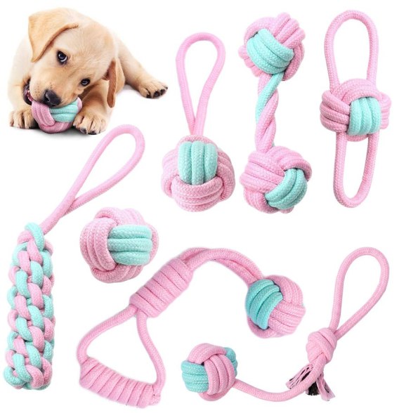 Zestaw 7 zabawek szarpaków dla psa PINKY