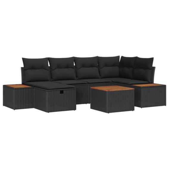 • Zestaw Sof na Ogród z poduszką 7 pcs Czarny polirattan