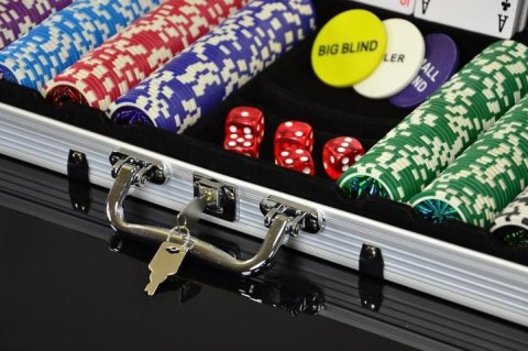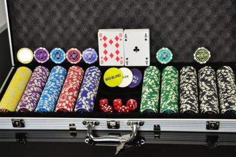 Zestaw do pokera zawiera 500 sztuk żetonów z rdzeniem metalowym, waga żetonu 11 g, żetony mają naklejki drukowane laserowo z nominałem , nominały odróżnione kolorystycznie. Korzystaj z wieczorów z grą w pokera w domu z przyjaciółmi. Ta walizka jest idealnym podarunkiem dla każdego miłośnika gry w pokera.