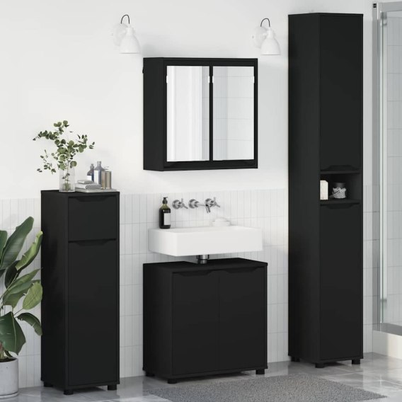 • Zestaw mebli łazienkowych 4 pcs Czarny Materiał drewnopochodny