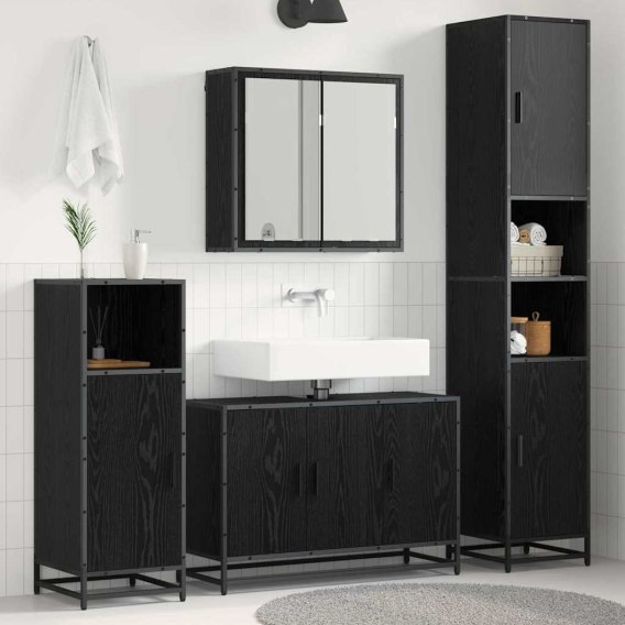 Zestaw mebli łazienkowych z półką z drzwiami 3 pcs Czarny Dąb