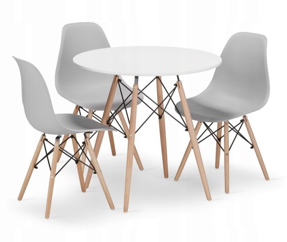 Zestaw stół okrągły TODI 80cm biały + 3 krzesła OSAKA szare