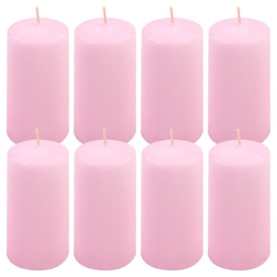Zestaw świec filarowych, 10 cm, Ø 5 cm, różowe, 8 szt.