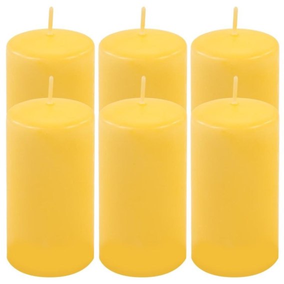 Zestaw świec słupkowych, 11,5 cm, Ø 6 cm, żółty, 6 sztuk.
