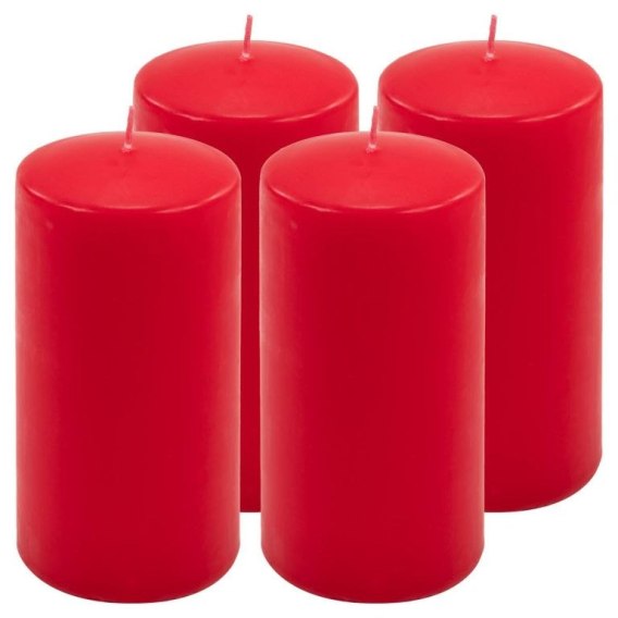 Zestaw świec słupkowych, 15 cm, Ø 7,5 cm, czerwony, 4 sztuki