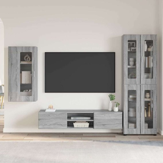 Zestaw szafek RTV z półką Szary Sonoma Materiał drewnopochodny