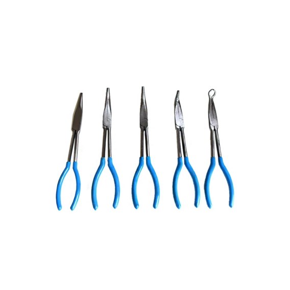 Zestaw szczypiec to uniwersalne narzędzia do pomocy w garażu. Wykonany z trwałej jakości materiałów zapewniają długie użytkowanie, a gumowana rękojeść sprawia że dobrze leżą w dłoni. Komplet zawiera 5 narzędzi w tym szczypce oczkowe. W zestawie znajduje się praktyczna torba, która posegreguje narzędzia w Twojej szufladzie w warsztacie.