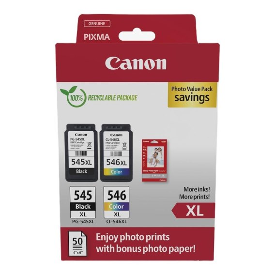 Zestaw tuszy Canon PG-545XL Black 15ml 400 str./CL-546XL Color 13ml 300 str. + papier fotograficzny glossy 50 arkuszy (8286B011)