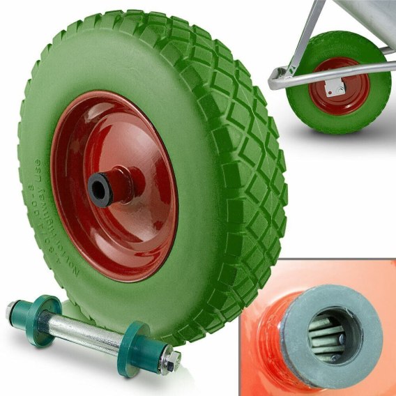 PEŁNE KOŁO DO TACZKI BEZDĘTKOWE Z OŚKĄ ZIELONE
