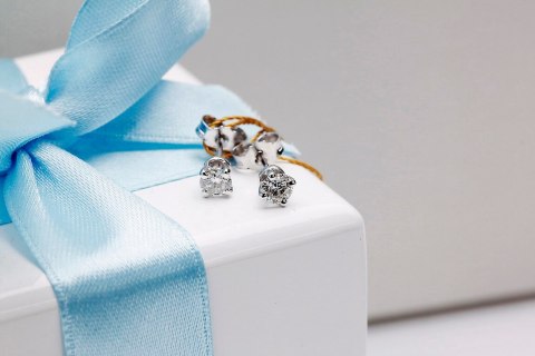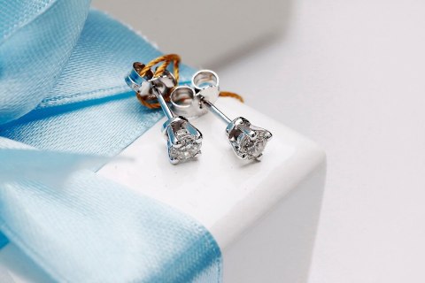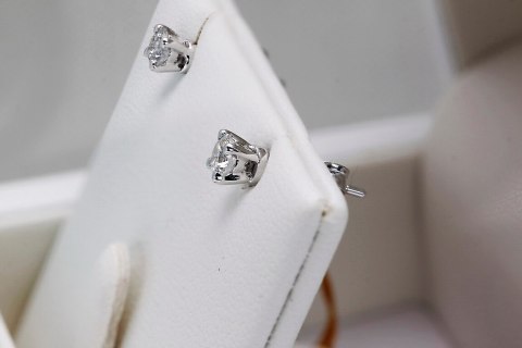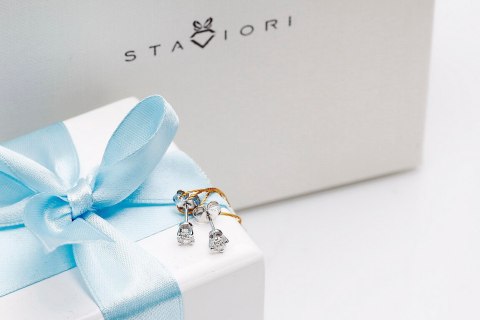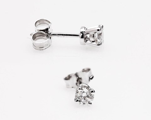 Staviori Kolczyki. 2 Diamenty, szlif brylantowy, masa 0,50 ct., barwa G-H, czystość SI1. Białe Złoto 0,585. Średnica 4,50 mm. Długość 4,60 mm.