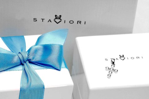 Staviori Wisiorek. Krzyżyk. 6 Diamentów, szlif brylantowy, masa 0,16 ct., barwa G-H, czystość SI1. Białe Złoto 0,750. Wymiary 15x10 mm. Długość 22 mm. Dostępne inne kolory złota.
