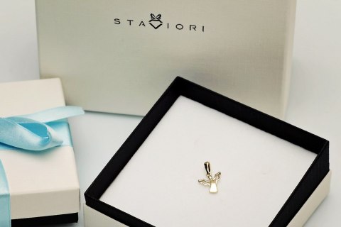 Staviori Wisiorek. Żółte Złoto 0,333. Wymiary 12x12 mm. Długość 18 mm. Śliczny wisiorek - aniołek - wykonany z żółtego złota próby 0,333. Skrzydełka rodowane.