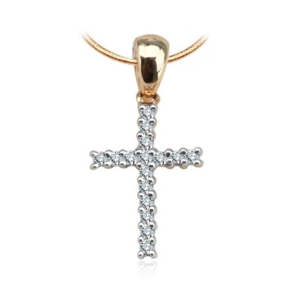 Staviori Wisiorek. Krzyżyk. 16 Diamentów, szlif brylantowy, masa 0,07 ct., barwa H, czystość I1. Żółte, Białe Złoto 0,585. Wymiary 8x12 mm. Długość 20 mm.